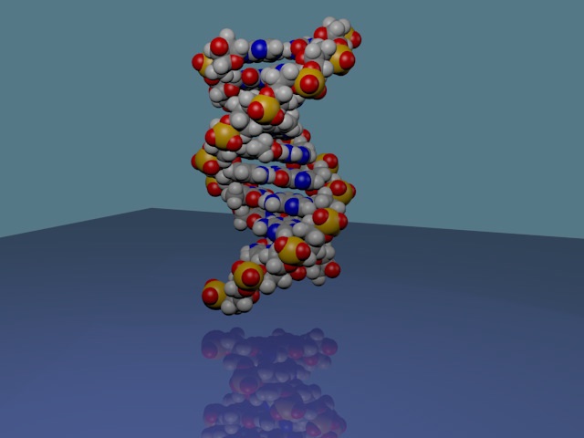 This is a 3D Animation of DNA created using Blender and Python Scripting. It was intended as an exercise in using Python and learning how to import external text data from files. Additionally I wanted to be able to parse that data and use it within the python script. The initial Python coding was done using IDLE (Python's Integrated Development Environment). In IDLE I tested my code to open the CSV text file, read each row from the file, separate each value from the row, and finally convert those values to floating point numbers. When I was happy with the results I just pasted the code into the Blender script window. I then added the lines to the script to import the BPY (Blender Python) module as well as the code to create the mesh spheres, and materials. If you want to run the parser without blender just comment out all of the blender bpy lines. It's worth noting that the parser works equally well with tab delimited files. Just change the line.split argument on line 33 from a comma to '\t'. Beyond the general Python experience it was fun to see how a process such as model creation could be automated in Blender. Since the Blender/Python script reads in an external data file to create the model of the DNA molecule it's easy to change the molecule being created simply by pointing the script to another external data file.